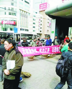 从地铁站前拉起“拖欠工资”横幅的照片细节上看,某建筑物挂有“和谐上海 共建文明”招牌,可认定此事发生在上海,而非企业总部北京。除地铁站讨薪照片外,还流传出一张某办公楼内拉起白色横幅的照片,横幅上写有“无良公司爱鲜蜂欠我们血汗钱,还我们血汗钱”。