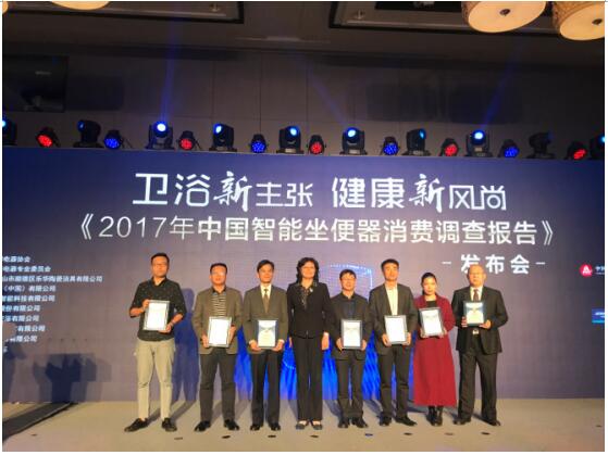 中国家用电器协会基于《2017年中国智能坐便器消费调查报告》为大家评选出了 “智能坐便器消费者满意品牌”,工业和信息化部消费品工业司副巡视员汪敏燕女士为获得“智能坐便器消费者满意品牌”称号的松下洁乐等七家智能坐便器品牌方颁发了证书。