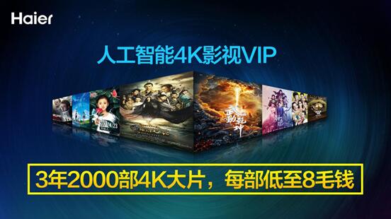 蓝光产业的失败证明,没有接地气的产品和价格,就没有规模的市场和可运营的空间。在4K内容的消费方面,海尔的做法显得格外亲民。比如,购买海尔阿里四代电视指定型号的用户,可享受价值798元的海尔4K影视VIP会员权益,观影一部4K大片的成本不到一块钱。要知道,一张正版蓝光碟片的价格少则几十元,多则数百元。这样的低门槛,让4K内容走进千家万户成为可能。